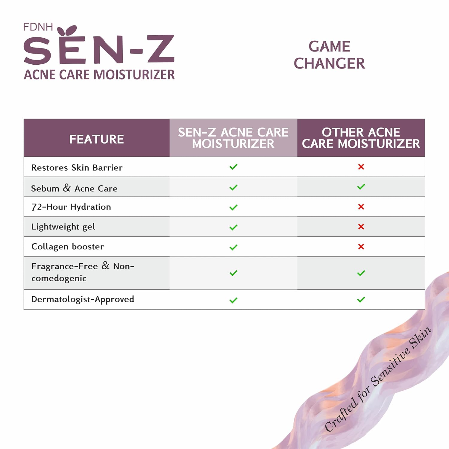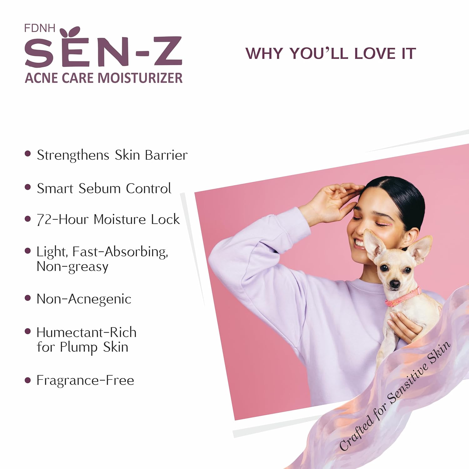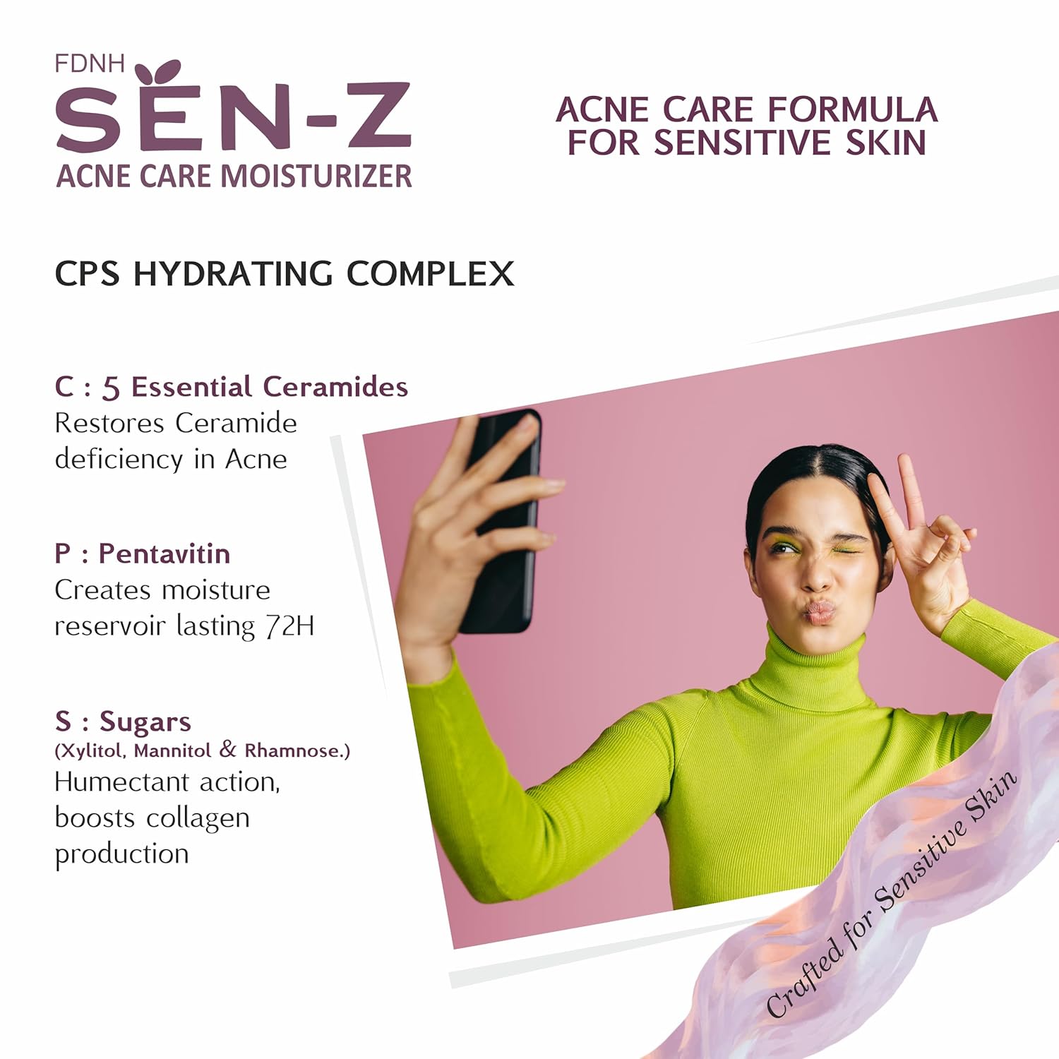 FDNH SEN-Z Acne Care Moisturizer | For Sensitive, Acne-Prone Skin | Lightweight, Oil-Free, Non-Sticky | 5 Ceramides, Niacinamide, Hyaluronic, Pentavitin | 72H Hydration & Barrier Repair | Fast-Absorbing| 50g